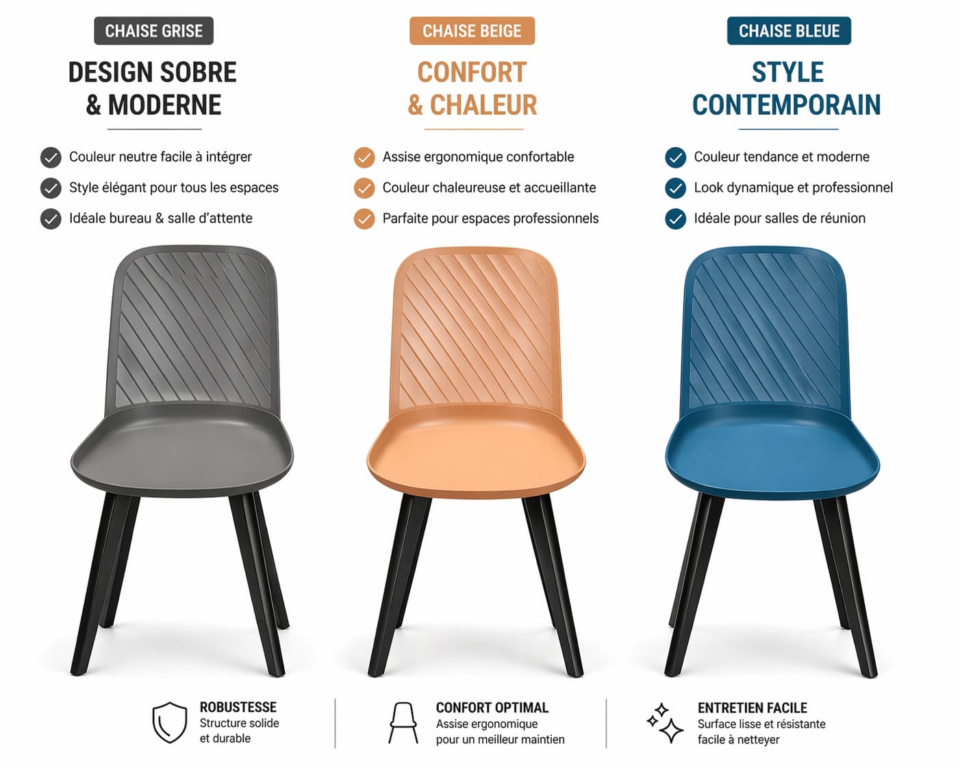 fabriquée en polypropylène brillant, est le choix parfait pour une assise élégante et durable. Son motif ajouré ajoute une touche d’originalité et d’élégance, tout en offrant un design moderne. Le dossier légèrement incurvé épouse la forme naturelle du dos, garantissant un confort d’assise optimal. Un polymère breveté, cette chaise se distingue par sa robustesse exceptionnelle et sa surface brillante, qui apporte une note sophistiquée à tout espace. Légère et pratique, elle pèse seulement 3,55 kg et est empilable, ce qui facilite son rangement, idéal pour les besoins du secteur de la restauration. Avec une hauteur d’assise de 43 cm et des dimensions totales de 51 × 52 × 81 cm (P × l × H), la chaise Maurage combine esthétique, confort et praticité pour répondre aux exigences des environnements professionnels. jardin, exterieur, chaises, cuisine, terrasse, chaise pliante, exterieure, plastique ….